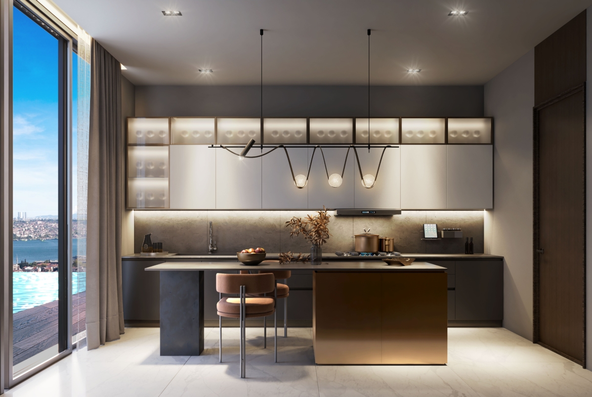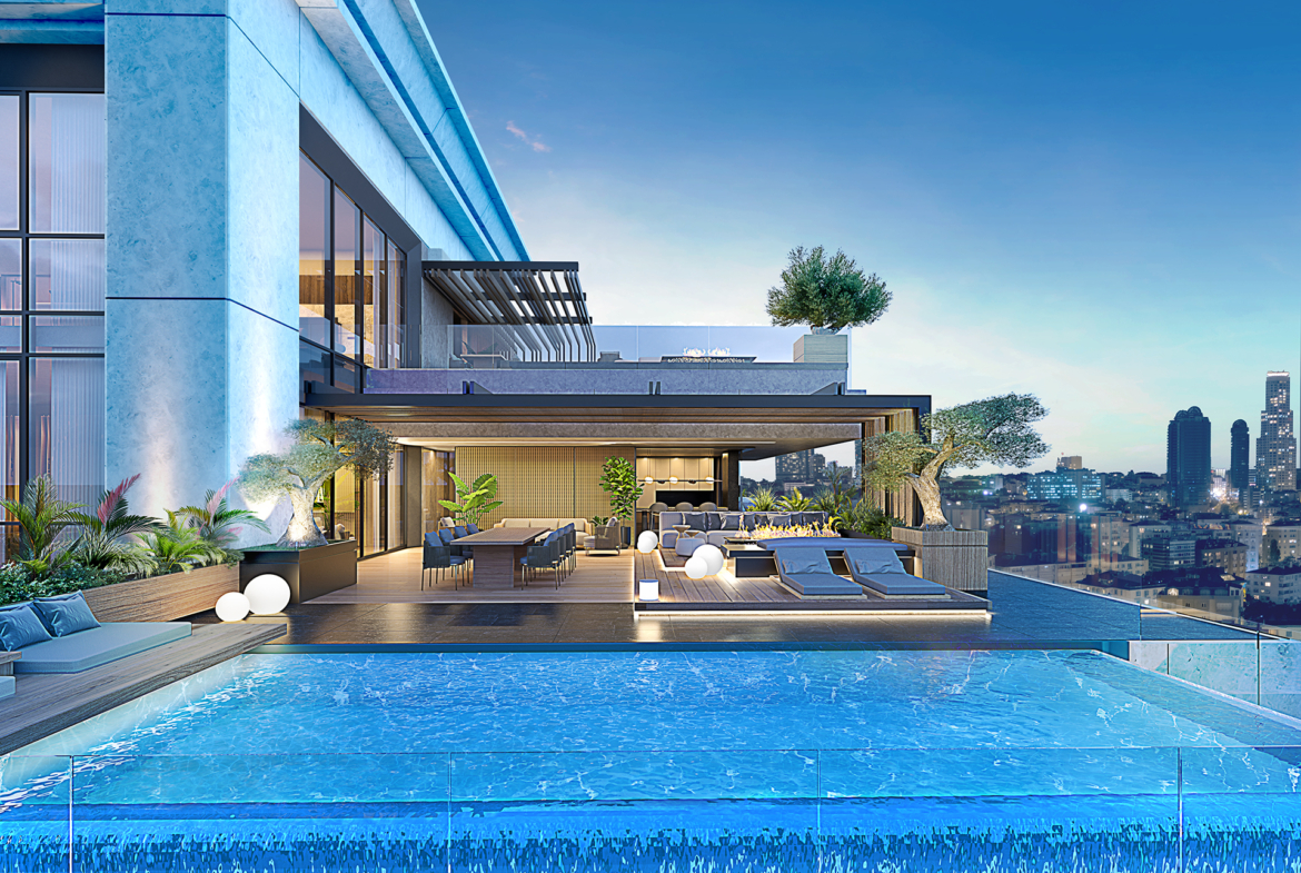 Thanks to this natural atmosphere, which almost exceeds the total green areas of Nişantaşı, you will be in the center of peace even though you are in the center of the city. Think about it… You go from your bedroom to the pool on your terrace and start your day by doing sports. With access to both the lounges and the terraces from the kitchens, you literally live every day on a luxury boat.